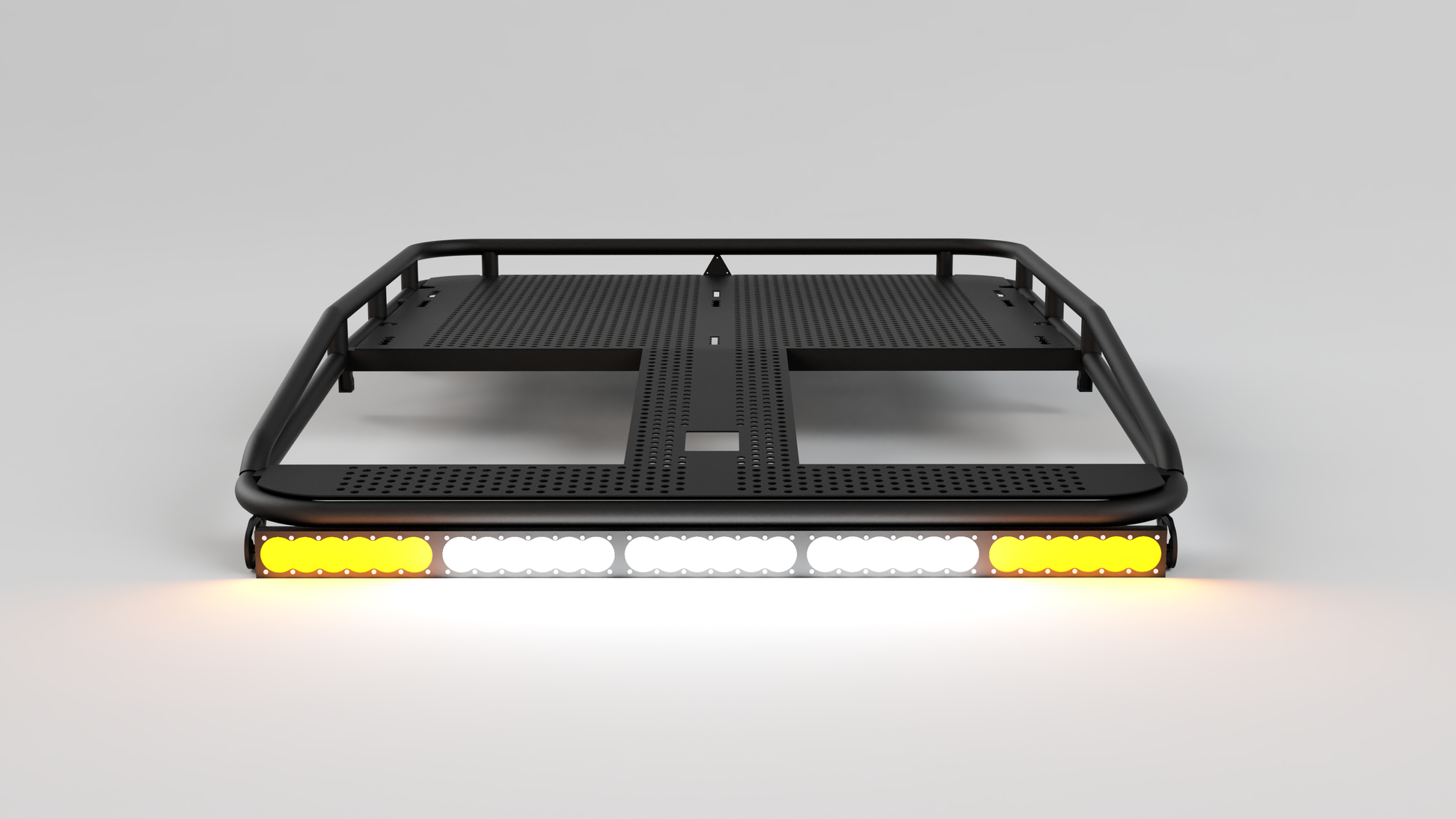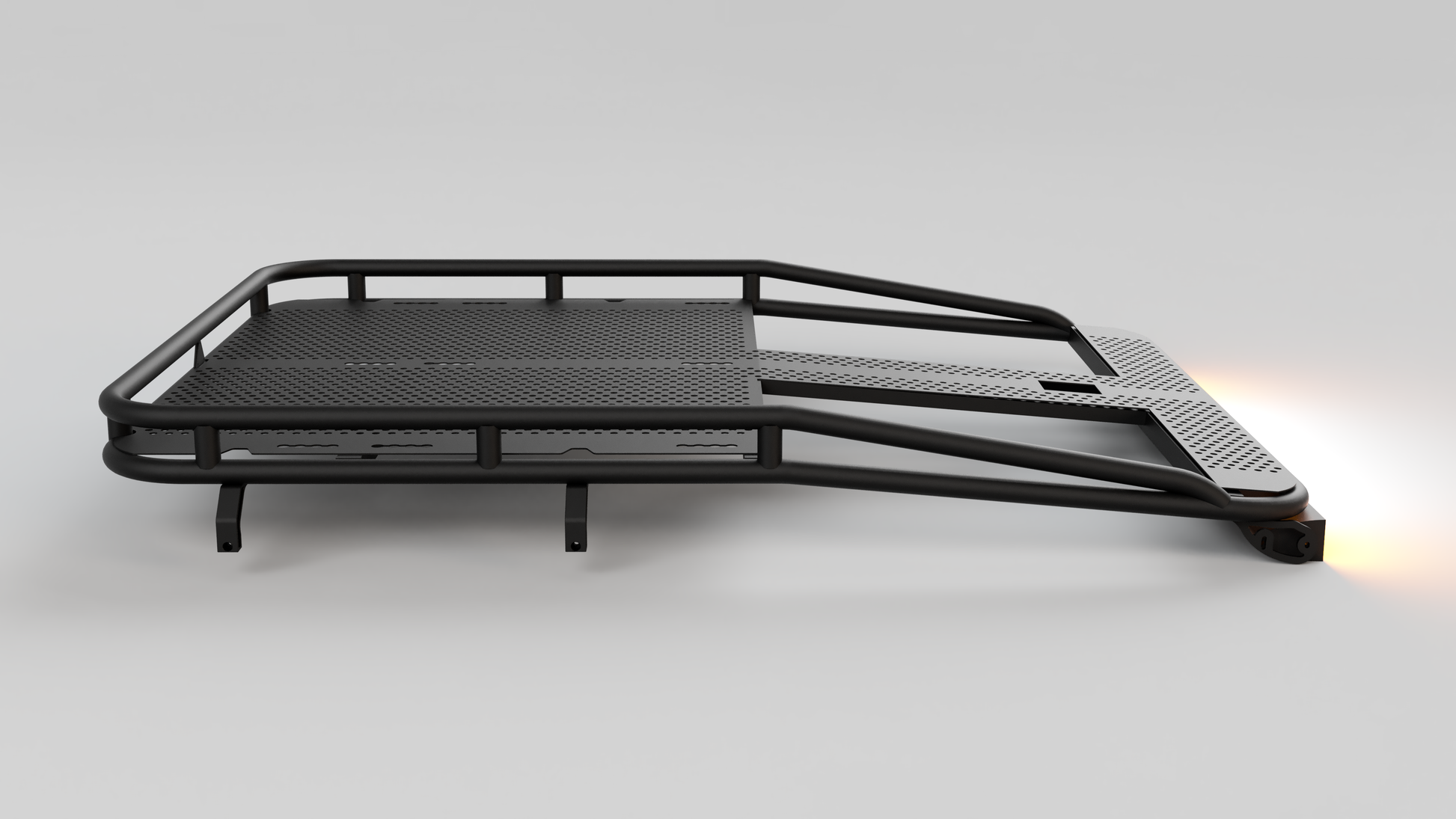 The Quartermaster Safari Rack was engineered specifically for the Ineos Grenadier Quartermaster platform.. Includes cutouts for the Ineos roof safari windows, and multiple points of integrated L track accessory points on the rack decking. Lights sold separately. Patent pending.